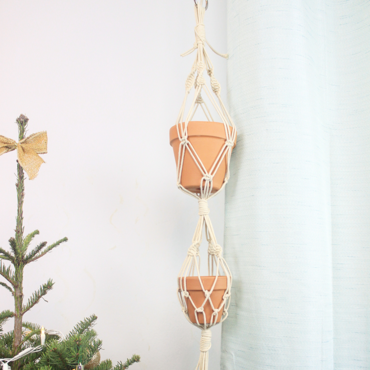 Two potted plants can be hung at once with this cotton cord macrame hanging planter